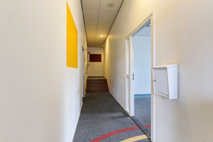 Entree, ontvangstruimte met toilet, receptie, gang naar de vergaderzaal, 4 kantoren, pantry, archiefruimte, opslag, toiletgroep, garderoberuimte, ruime kantine met aparte rokersruimte, werkplaats (afmeting circa 17 x 7 meter) met 3 overheaddeuren.